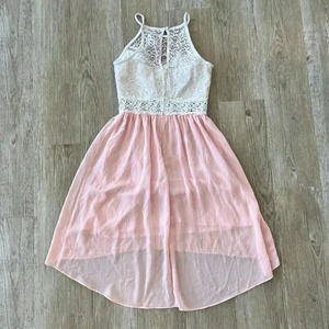 Skirt: 100% polyester; Lace: 92% nylon, 8% spandex