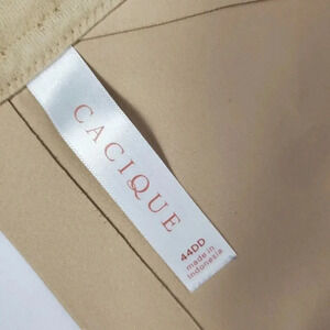 Women's Lane Bryant Cacique Lightly Lined Full Coverage bra, size 44DD. Although it doesn't say on the tag, this looks to be from the Invisible Backsmoother line. Color is a beige tan nude champagne, but official color may match "cafe" from the website. Garment is in excellent pre-owned condition with no stains or tears, as well as any signs of wear. New in August 2022. Material content is (cups) 82% nylon/18% spandex (wings) 63% nylon/37% spandex. Retail price is $58.50.