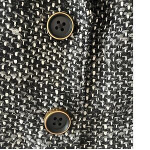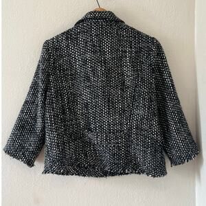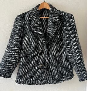 Women's CAbi Black White Tweed 2 Large Button Frayed Blazer Jacket Size Large