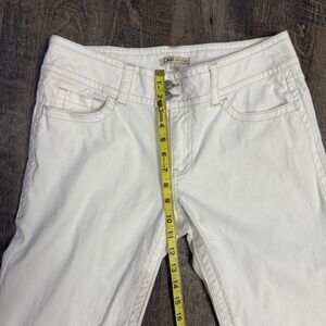 The product is a pair of CAbi wide-leg jeans in white, designed for women in size 12. These jeans offer a comfortable and stylish option for casual wear, with the wide-leg style providing a flattering fit and a trendy look. Perfect for everyday wear or dressed up with heels, these jeans are a versatile addition to any wardrobe.