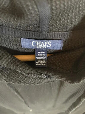 Add a cozy and stylish layer to your wardrobe with this women's CHAPS black knit top. The waffle pattern, long sleeve, and hooded neckline make it perfect for the colder seasons. The brand, Chaps, ensures that you are getting a high-quality item. Available in a size Medium.