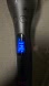 This is a pre-owned CHI automatic rotating hair curler in black with orange accents. The device features a digital display showing temperature and a power cord with a standard two-prong plug. Visible controls include power and temperature adjustment buttons. The curler has a rotating barrel for automatic curling. There is a small area of wear or damage on the side of the main body, appearing as a scuffed or melted spot. The cord is secured with a hook-and-loop strap.