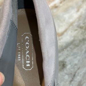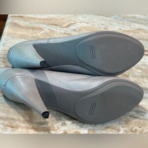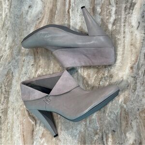 Women’s COACH Annika gray leather and suede fold over ankle heeled bootie- Size 10. 3.5in heel. Great, used condition. See all photos. Smoke free home. Fast shipping!
