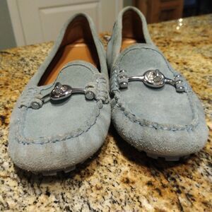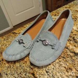 Women’s COACH Arlene Shoes Flat Loafers Calf Suede Sea Sand Blue Size 7B