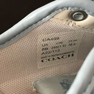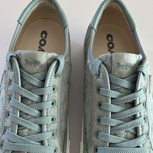 COACH Citysole Platform Lace-Up Platform Sneakers in Signature Terry Cloth Aqua Blue. Size 8B US. Signature Detailing C Monogram pattern. Fabric Leather Inner Layer. 11/2” Platform Heel, Rubber Sole. See All Photos, Excellent Used Condition.