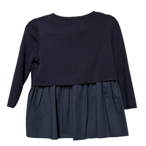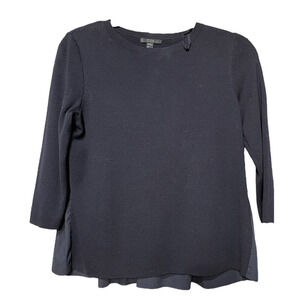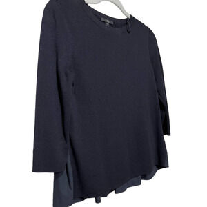 Women’s Sweater Shirt Round Neck Boxy Tail Back / Size- XSmall / Color- Dark Navy Blue With Lighter Navy Blue Tail / Lightweight / 100% Wool,100% Cotton / Pre-Owned In Good Condition
