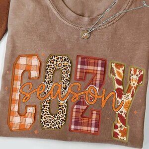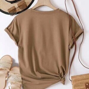 Women's COZY SEASON Tan Crewneck Short Sleeve T-Shirt Knit Fall NEW XL