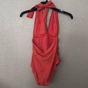 Women’s CUPSHE Whitney Ruched Halter Tummy Control One Piece Swimsuit XS Orange