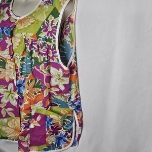 Womens CW Classics Purple Floral Sleeveless Pearl Snap Front Pockets Tank Top 1X