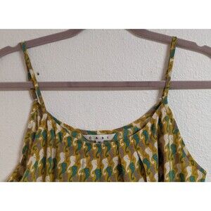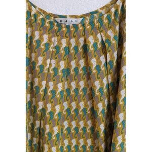 The Women's Cabi #411 Seahorse Tank is a stylish and versatile addition to any wardrobe. With a square neckline, adjustable straps, and pleated front, this flowy tank top offers a relaxed fit perfect for casual occasions in the summer, fall, and spring. Made from chiffon fabric with a colorful seahorse pattern, this camisole features strappy sleeves and is machine washable for easy care. perfect for a day at the beach, a bohemian outing, or adding a pop of color to your city or classic look. Made by Cabi, this top is sure to become a favorite go-to piece for women who appreciate a blend of style and comfort.