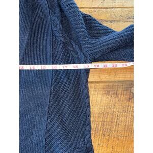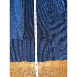 This Cabi cardigan is in excellent pre-loved condition! No rips or stains. It is a navy blue cable knit open front sweater. This is such a classic staple piece! It is very well made and is very warm. There are pockets on the sides, too. Measurements are in the photos. Womens size XS!