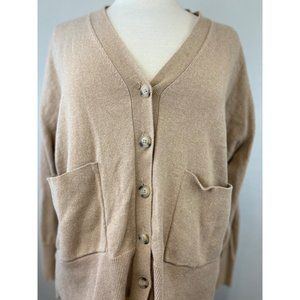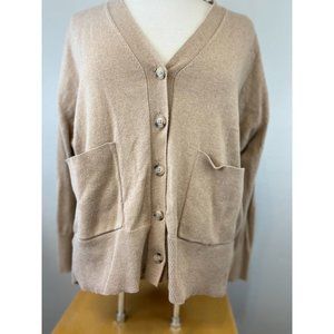 Women's Cabi Small Button Up Cardigan Sweater Tan 100% Cotton Solid Basic L/S 23