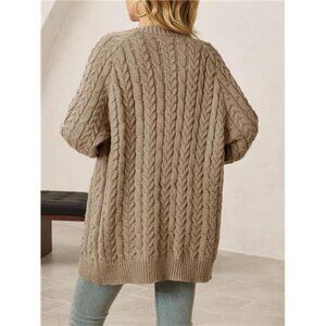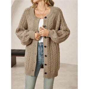 Women's Cable Knit Cardigans Oversized Chunky Button Down Long Lantern Sleeve