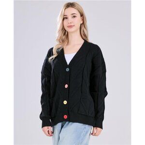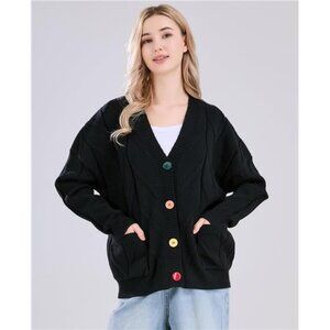 *Features: Soft warm fabric, V-neck, solid color, ribbed trim at closure, open front, casual loose cardigan top, rainbow buttons, hip length, two side pockets, drop shoulde top, suitable for cool season. The open cardigan is lightweight, not too thin or too thick, good for spring, fall and winter days.