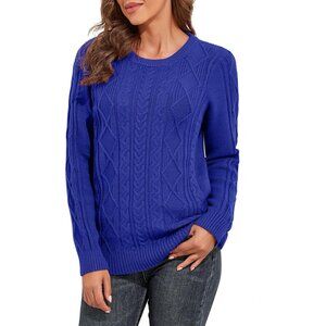 Womens Cable Knit Sweater Medium Blue Long Sleeve Casual Crewneck Pullover