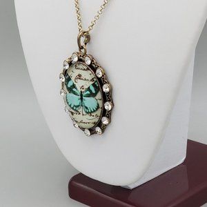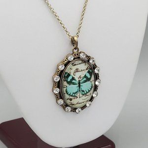 Womens Cabochon Butterfly Image Pendant Gold Tone Round Link Chain Necklace 22in
