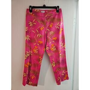 The product is a pair of women's Cache Capri pants in size 6. The pants are in a stylish pink color, perfect for adding a pop of color to your outfit. With a capri style, these pants are ideal for warm weather and can be dressed up or down for any occasion. The Cache brand is known for its trendy and flattering designs, making these pants a great addition to any woman's wardrobe.