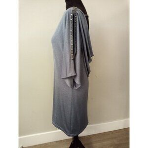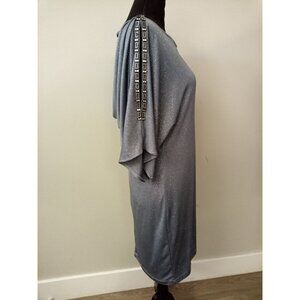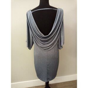 • Women's Cachet Blue Silver Bling Low Back Mini Cocktail Dress Draped Low Back Cold Shoulder Bling Sleeves Silver Glitter Measurement Lying Flat Pit 2 Pit 18 in Dress Length 34 in RN 61248
