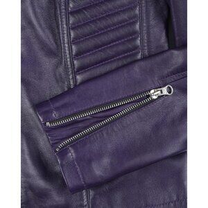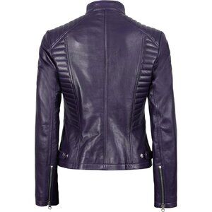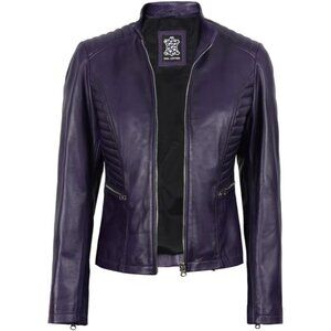 Women's Cafe Racer Style Real Leather Jackets Rachel Purple Zipper Long Sleeves