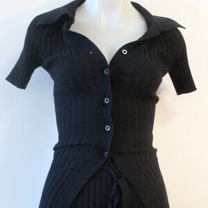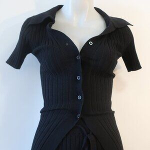 TOP- COLLARED, CARDIGAN/BUTTON CLOSURE, RIBBED, SHORT SLEEVES,