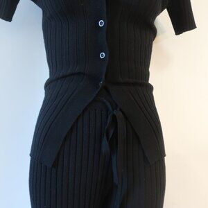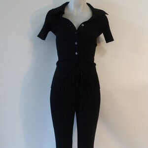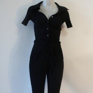 Womens California Inspired Black 2-Pc Set Cardigan Top & Drawstring Pants S