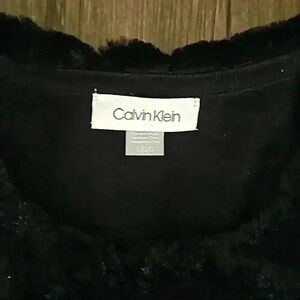 Womens Calvin Klein Black Faux Fur Chevron Pattern Jacket Large