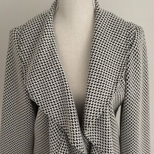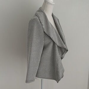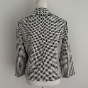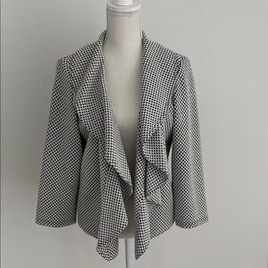 Stylish women's jacket in a classic black and white pattern. Perfect for any occasion.
