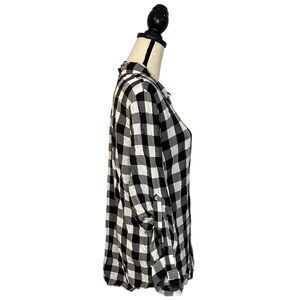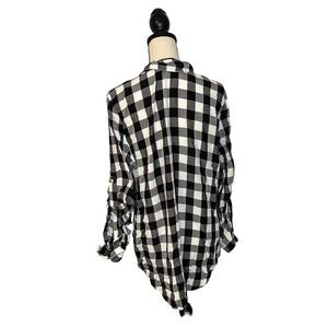 Womens Calvin Klein Button Down in Black White Gingham Plaid Shirt SOFT Size XL
