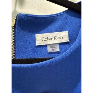 Women’s Calvin Klein Capri Blue Stretch Crepe Flutter Slv Shift Dress 12 Large