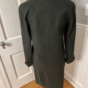 Beautiful vintage Calvin Klein Collection wool, cashmere, nylon, and spandex suit. Jacket & skirt. Dark green.
