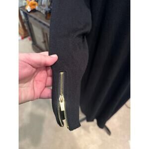 Black knit dress with gold hardware. 3/4 length sleeves with zipper trim