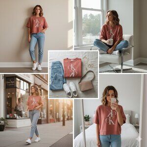 Stay effortlessly stylish and comfortable in this Calvin Klein logo crewneck T-shirt. Designed with a relaxed fit and ribbed bottom hem, this top combines the casual feel of a sweatshirt with the breathable comfort of a tee. The bold CK logo across the front adds a signature designer touch — perfect for pairing with jeans, leggings, or joggers for an elevated casual look.