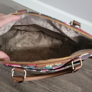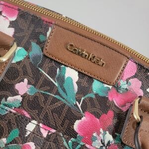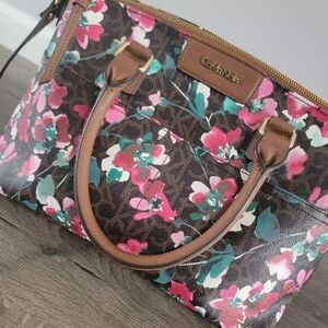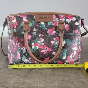 Calvin Klein brown floral handbag in like new condition. Used once. Excellent condition. Interior and exterior are spotless. No rips or stains. From a pet & smoke free home