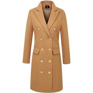 Womens Camel Fall Winter Wool Coats Double Breasted Midi Peacoat Trench Coats