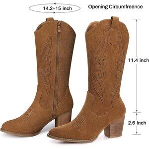 These retro women cowboy boots wide calf are made from high-quality suede leather, western boots women were so soft and comfy. Mid calf cowgirl boots for women, cowgirl boots extra wide calf, cowboy boots for women wide calf, womens cowboy boots mid calf, mid calf cowgirl boots, big calf cowgirl boots, anti-slip wood sole, low chunky heel to provide stability and support.