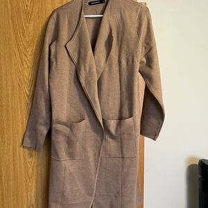 Elevate your style with this elegant camel open front coat. Perfect for layering, this coat offers both comfort and sophistication. Ideal for any occasion.