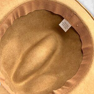 Womens Camel Tan Wool Fedora Hat With Adjustable Leather Band