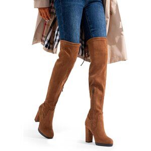 Women's Camel-imitation Suede Thigh High Over The Knee Rounded Toe Tall Boot