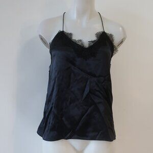 Womens Cami NYC Black Pure Silk Satin Lace Trim Spaghetti Strap Camisole Top S