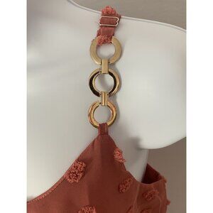 Womens Camisole Chiffon Sleeveless Top With Textured Dots & Chain Straps Small