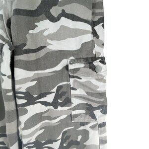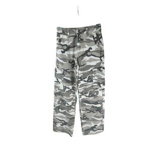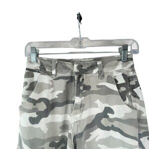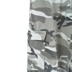 Women's Camo Cargo Pants XS Adjustable Waist Gray White Cotton Blend Streetwear