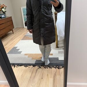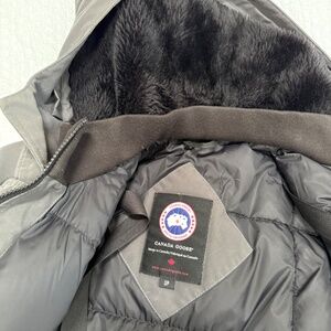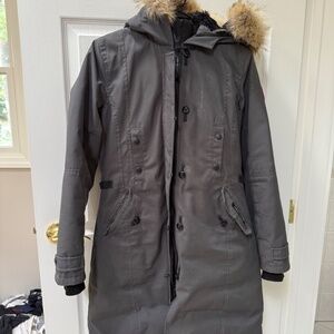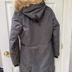 This is a legitamite canada goose parka. Dark grey. Size medium. Detatchable fur on hood. Longer length (i am only 5’3 so its longer on me than most) Really warm and in good condition. No stains/tears and from a smoke free home. Its been in my closet for a couple years as I have been pregnant over the last winter so it no longer fit!