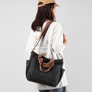 Features: This large capacity tote is both stylish and super practical — big enough to fit A4 magazines, an iPad, cosmetics, umbrella, and more. It has a sturdy canvas exterior with multiple smart compartments including a main pocket, zipper pocket, cell phone slot, card pocket, plus external front and side pockets for quick access. Detachable, adjustable shoulder strap for versatile wear.