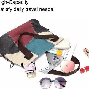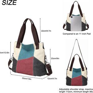 Features: Stylish multi-color block design with a versatile silhouette. Made from tear-resistant high-quality canvas and comfy leather woven fabric, this tote is lightweight yet durable. It features five pockets — one main compartment, an outside zipper pocket for your phone, plus an interior zipper and two open pockets for organization. The adjustable strap makes it easy to switch from shoulder to crossbody for maximum convenience.