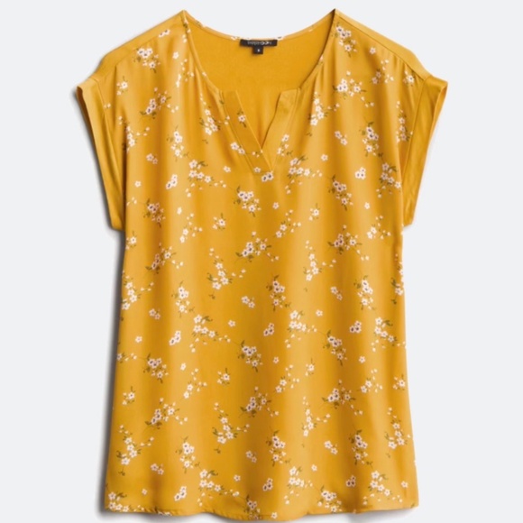 Womens Cap Sleeve Top, Yellow Floral, Size S, EUC