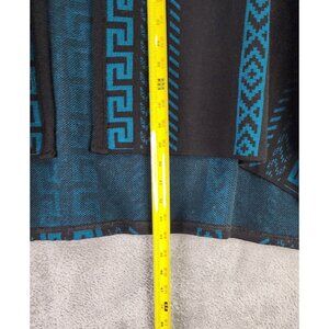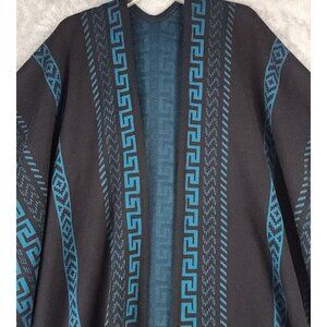 Womens Cape Coat One Size Black Blue Aztec Print Mexican Poncho Coatigan