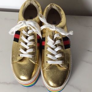 Women’s Cape Robbin 2.75 Platform Wedge Shoes Metallic Gold Sneakers Size 7