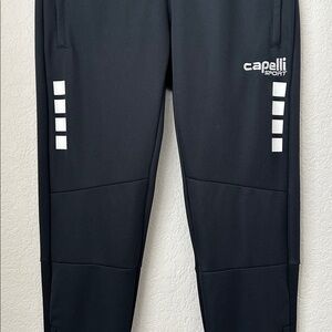 Comfortable black sport pants. Features Capelli branding. Ideal for active wear.