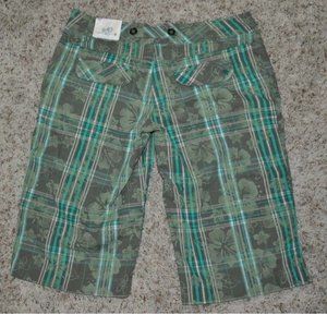 Womens Capris SO Green Hibiscus Plaid sz 7 Lowrise Lightweight Crop Pants