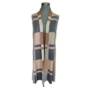 Women’s Cardigan 1775 Long Vest Plaid Open Front Cardigan Knit Sleeveless Jacket